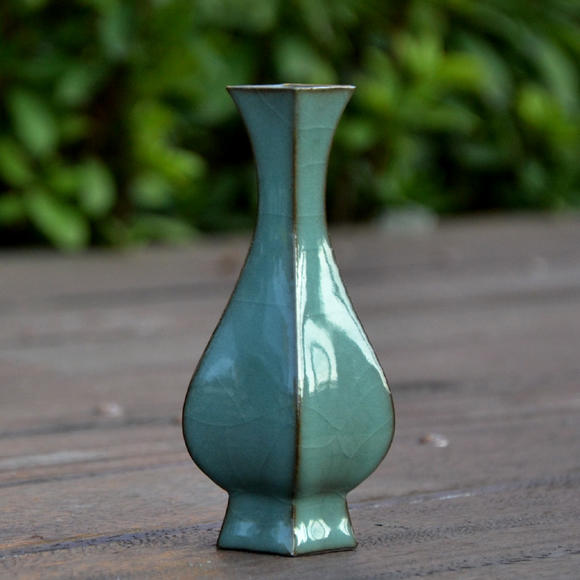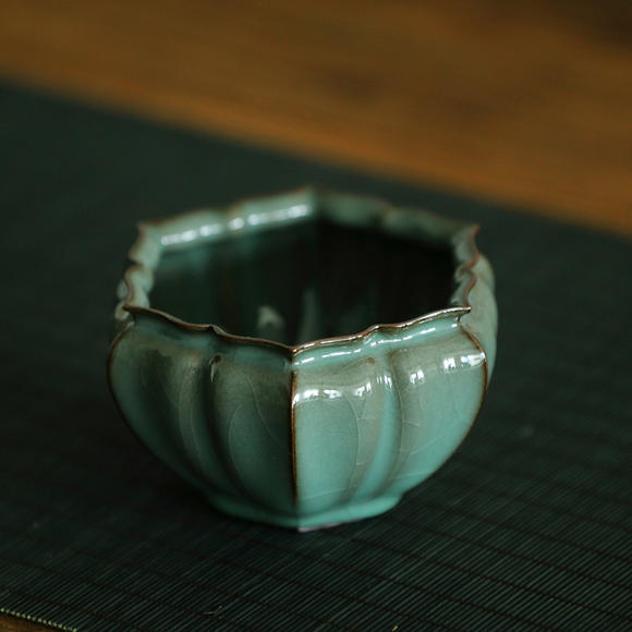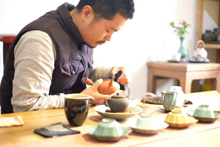 1984年出生的汤忠仁,毕业于中国美术学院陶瓷艺术系,是龙泉青瓷行业里为数不多的学院派。在中国美院攻读硕士期间,他参与了上海世博会中国馆咖啡厅《青园》项目的设计制作,同时为比利时馆钻石展设计制作青瓷作品《合》。这些年来,汤忠仁把理论研究与实践创作紧密结合,专注于研究龙泉窑黑胎青瓷工艺特征,从摹古到创新,逐渐探索出一条独具特色的青瓷创作之路。如今,他的龙泉黑胎青瓷研究理论独树一帜,其作品异形、八角、方型花口等造型巧妙别致,紫口铁足,薄胎厚釉,开片优美,一度引领市场潮流。