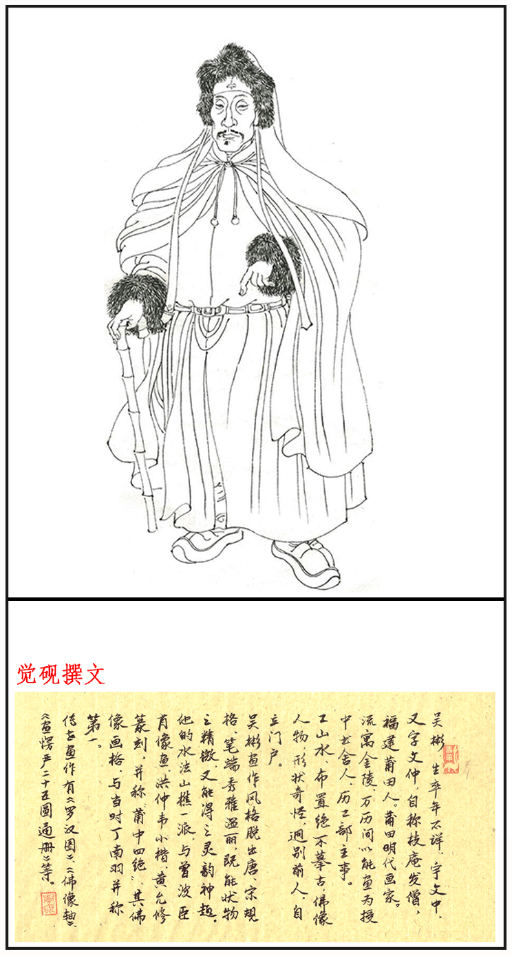 吴彬,生卒年不详,宇文中,又字文仲,自称枝庵发僧,福建莆田人。流寓金陵,万历间以能画为授中书舍人,历工部主事。工山水,布置绝不摹古,佛像人物,形状奇怪,迥别前人,自立门户。平民出身,在莆田长大,青年离乡。住过杭州,遍游江南,也到过四川,往返于明代最重要的城市南京和北京。