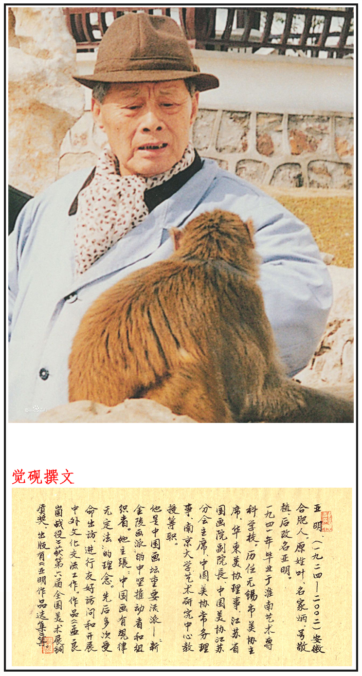亚 明,(1924~2002年),安徽合肥人。原姓叶,名家炳,号敬植,后改名亚明。历任无锡市美协主席,江苏省美术工作室主任,华东美协理事,江苏省国画院副院长,中国美协江苏分会主席,中国美协常务理事,香港《文汇报》中国画版主编,南京大学艺术研究中心教授。 出版有《访苏画辑》、《亚明作品选集》、《亚明画集》、《三湘四水集》、《亚明近作选集》、《当代名家中国画-亚明》等。