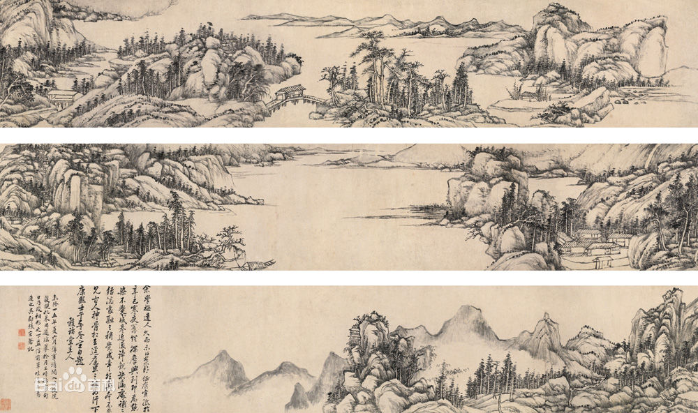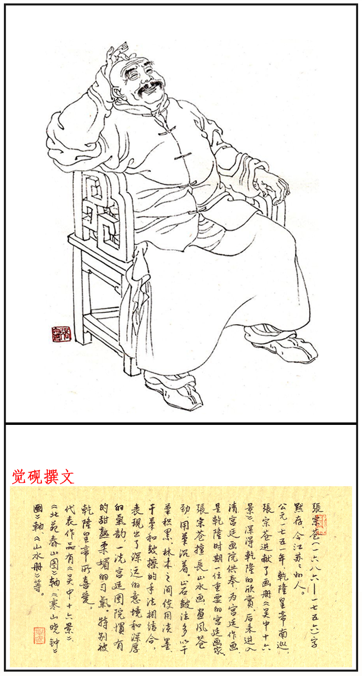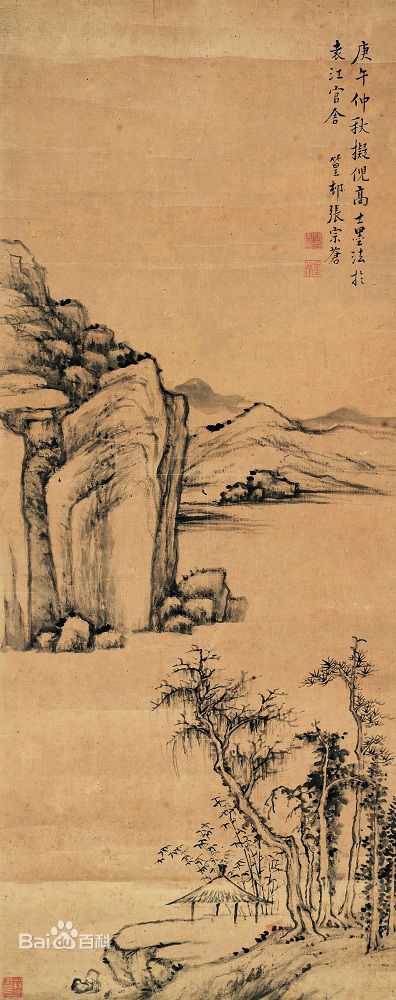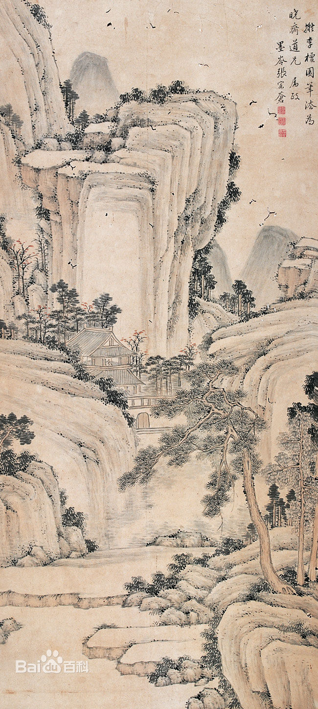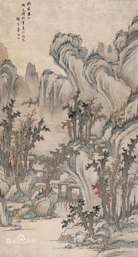 张宗苍(1686年——1756 年)字默存,今江苏苏州人。师承清代娄东画派的传人黄鼎。擅画山水,代表作有《吴中十六景》等。公元l751年,乾隆皇帝南巡,张宗苍进献了画册《吴中十六景》,深得乾隆皇帝的欣赏,后来进入清宫廷画院供奉,为宫廷作画,是乾隆时期一位重要的宫廷画家。清代宫廷绘画在清代绘画史上有着重要的地位,特别是乾隆时期,设立了如意馆广收人才,创作了很多纪实、历史故事、宗教及装饰题材的作品,具有特殊的历史与艺术价值,在乾隆一朝的宫廷画家中,张宗苍是很重要的一位。张宗苍的山水画,画风苍劲,用笔沉着。山石皴法多以干笔积累,林木之间使用淡墨,干笔和皴擦的手法相结合,表现出了深远的意境和深厚的气韵,一洗宫廷画院惯有的甜熟柔媚的习气,特别被乾隆皇帝所喜爱。