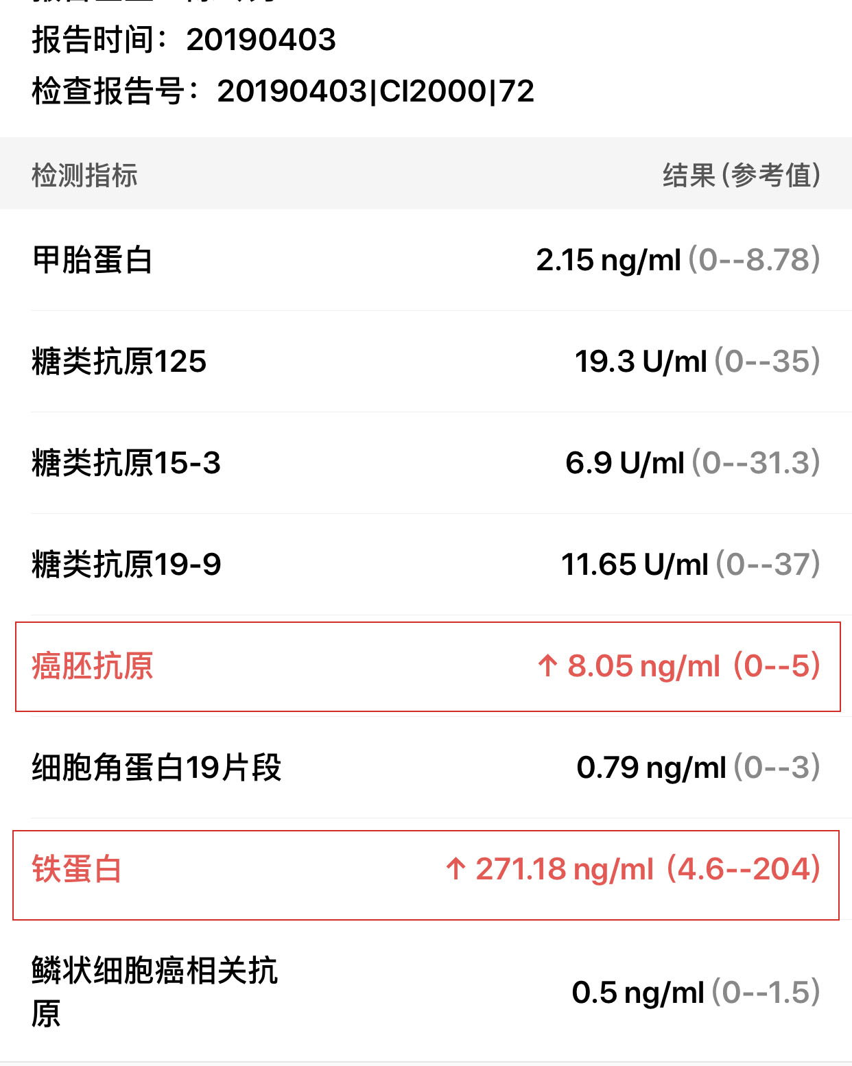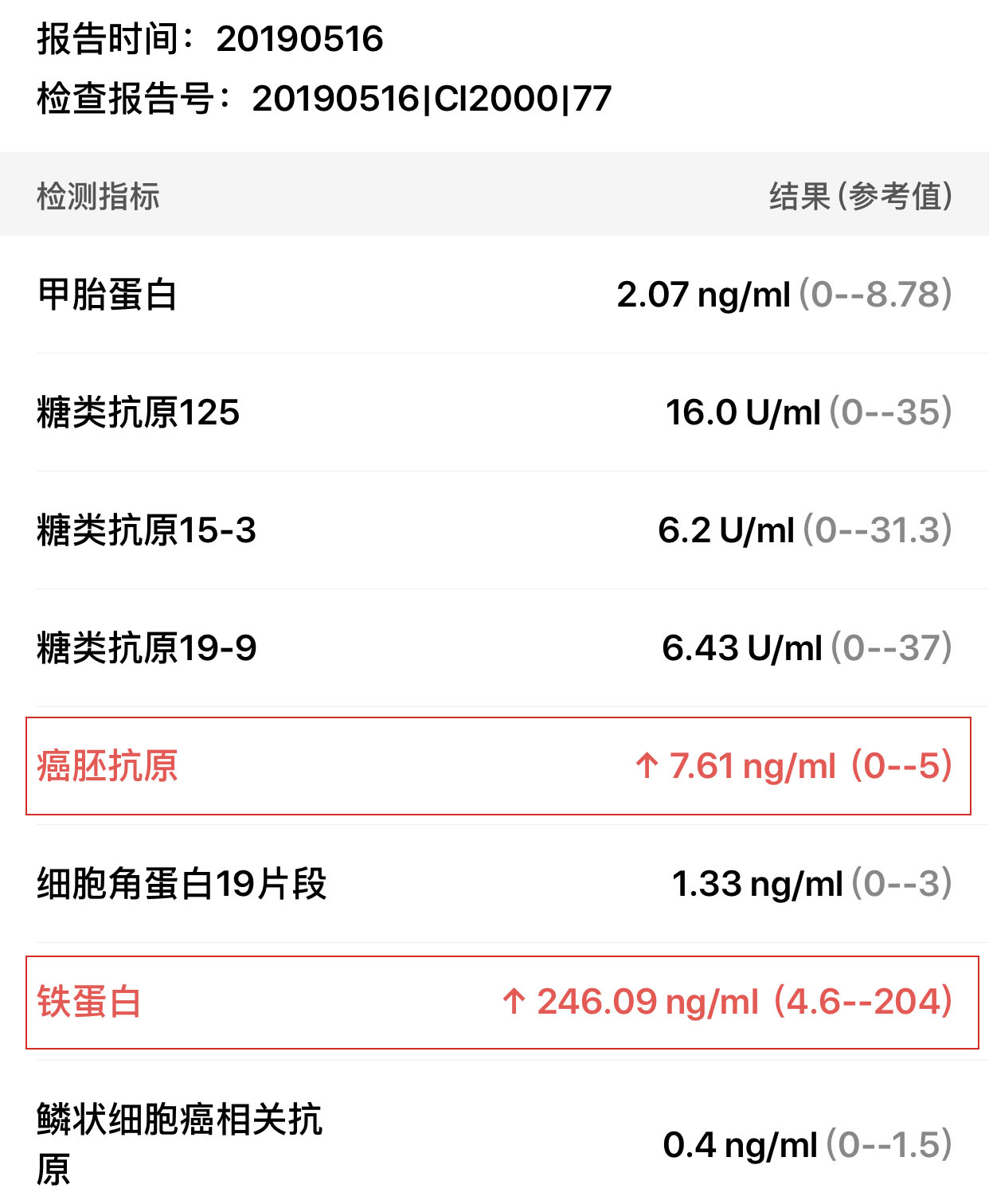 ③ 4月20号—5月21号家中有事,没有在体验馆吸氢,5月21号回体验馆继续吸氢, 肿瘤八项中“癌胚抗原”,“铁蛋白”指标还是不太稳定,但人没有感觉到任何的不适。