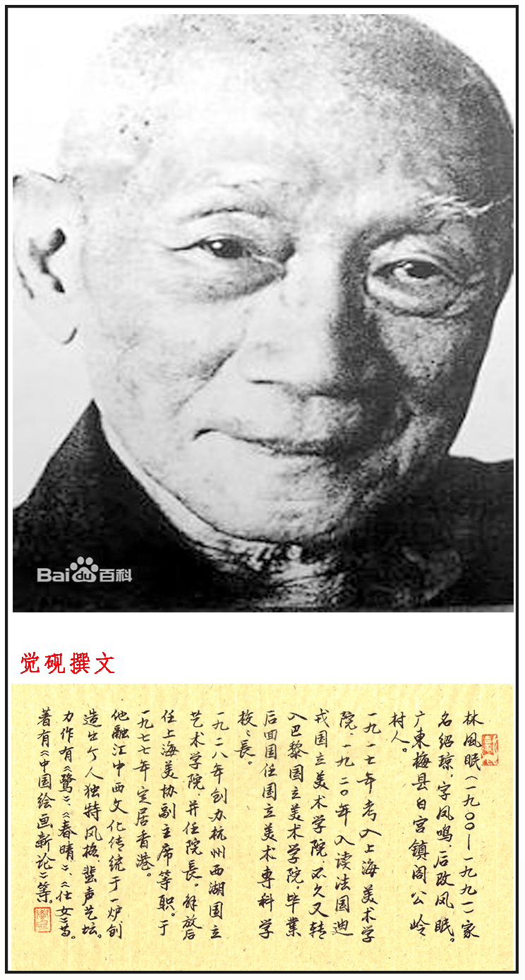 林风眠(1900年11月22日--1991年8月12日),画家、艺术教育家、国立艺术院(现更名为中国美术学院)首任院长。 [1]
