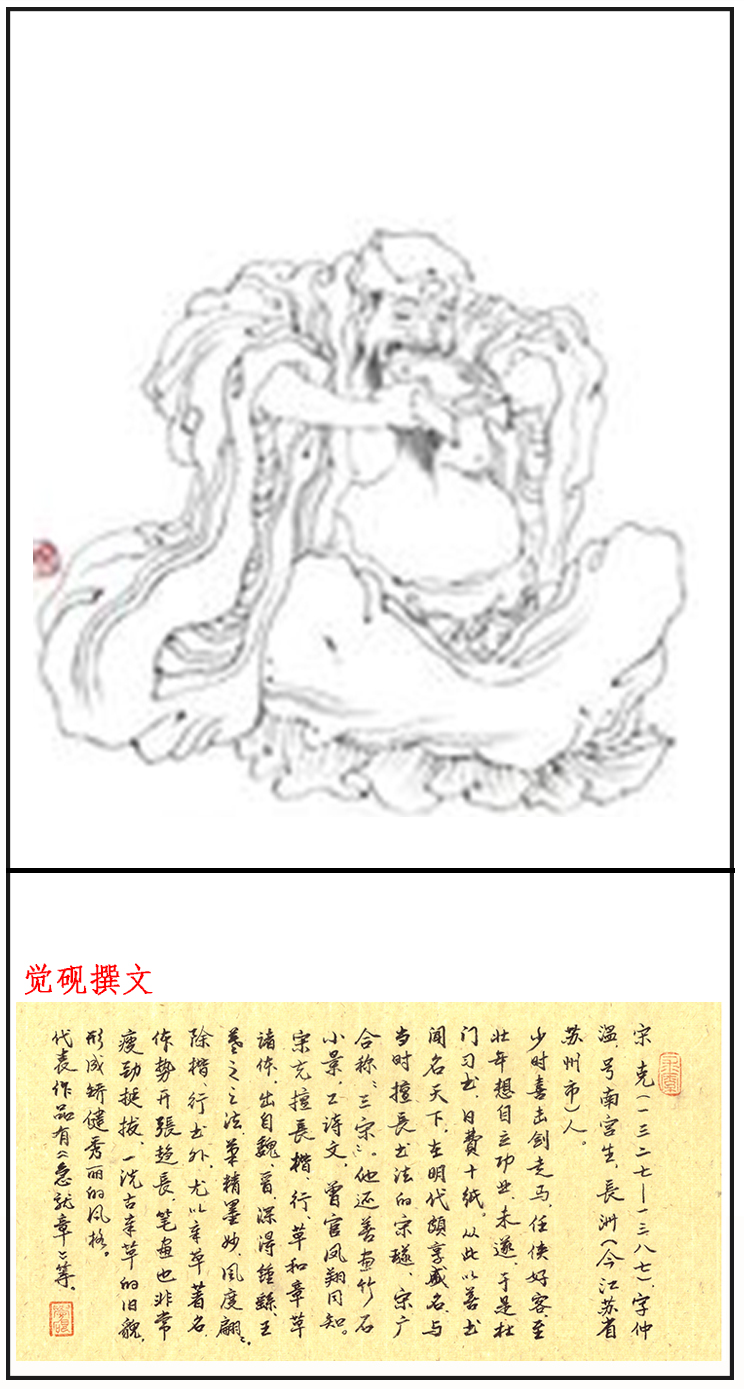 宋克(1327―1387)字仲温,一字克温,自号南宫生,长洲(今江苏苏州)人。是明代初期闻名于书坛的书法家“三宋二沈”之一。与高启等称十友,诗称十才子。