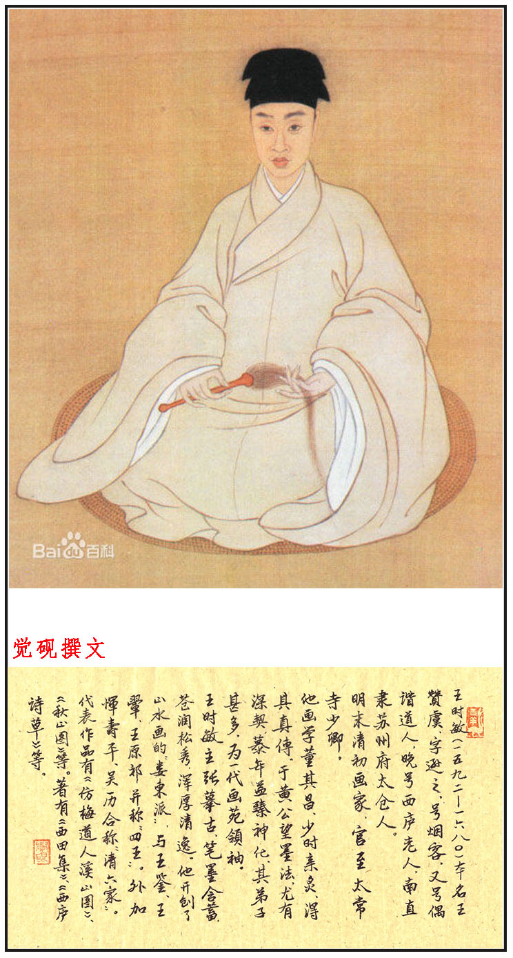 王时敏(1592-1680年),本名王赞虞,字逊之,号烟客,又号偶谐道人,晚号西庐老人,南直隶苏州府太仓人,明末清初画家,大学士王锡爵之孙,翰林编修王衡之子,“四王”第一代人。